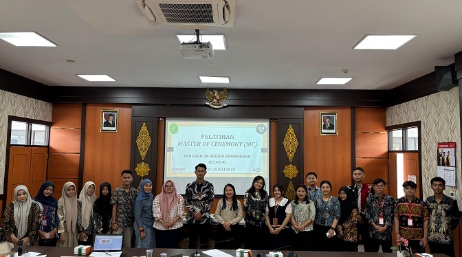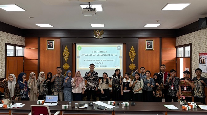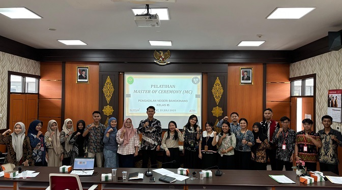 Jumat, 25 Juli 2025 dilaksanakan Pelatihan Master Of Ceremony (MC) Pada Pengadilan Negeri Bangkinang Kelas IB dengan mengundang Pelatih dari Kepala Bagian Protokol dan Komunikasi Pimpinan Sekretaris Daerah Kampar yang bertempat di ruang Command Center Pengadilan Negeri Bangkinang.