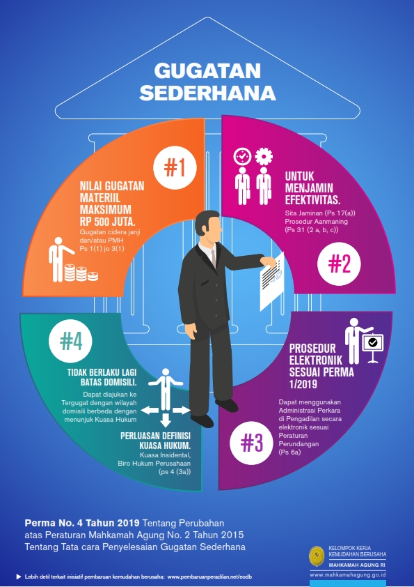 Perma No 4 tahun 2019 diterbitkan untuk menyempurnakan perma no 2 tahun 2015 yang bertujuan untuk mempercepat proses penyelesaian perkara sesuai asas peradilan sederhana, cepat, biaya ringan. Terbitnya Perma ini juga salah satu cara mengurangi volume perkara di MA dan diadopsi dari sistem peradilan small claim court yang salah satunya diterapkan di London, Inggris.
